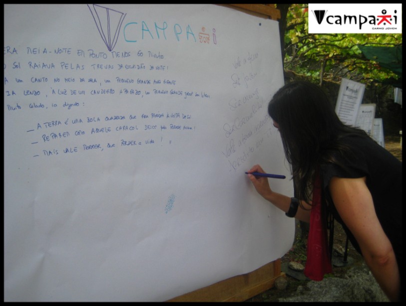 Na manhã do dia 5 de Agosto, sexto dia do Vcampáki, deu-se início a mais uma aula na nossa Universidade que, embora um pouco molhada, nos permitiu ter mais um momento de conhecimento rodeados pela natureza.